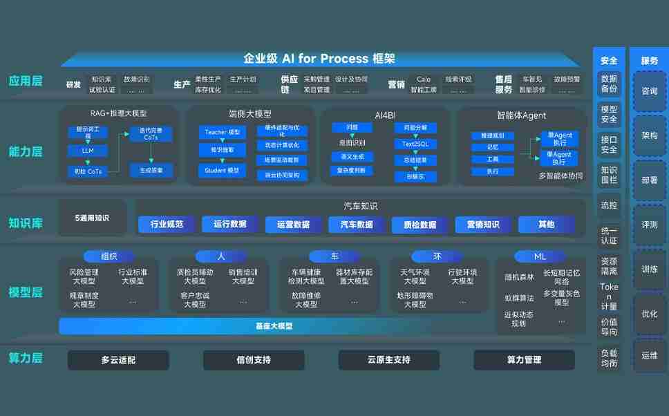 尊龙凯时问学智车解决方案是一套基于AI技术的汽车行业智能化系统,,,,覆盖从底层算力到顶层AI应用的全栈方案。。方案由算力层、、、、模型层和应用层组成:算力层,,方案支持多种一体机配置,,,,具备云端灵活部署、、、多云适配以及动态优化计算资源的能力;模型层,,,尊龙凯时问学平台版提供了企业级AI应用一站式构建与管理平台,,,,支持基于后训练强化技术的汽车企业专属模型的训练、、、、评测和运营;应用层,,尊龙凯时问学DeepSeek版提供包括超级员工、、、、智能招采、、智能营销、、、智能客服、、、、AI for BI等一系列解决方案,,,可助力汽车行业实现数字化转型,,,,让管理更智能、、、、响应更敏捷。。。